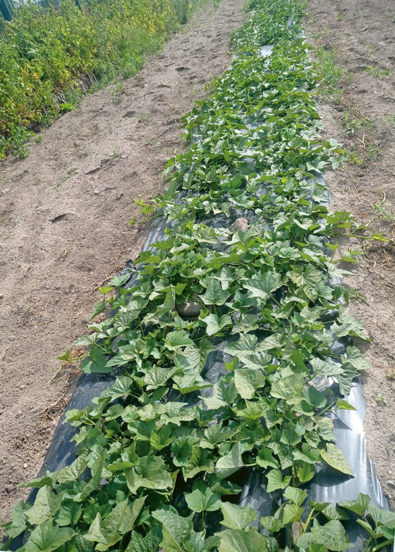Viikissä tehtiin pieni kenttäkoe, jossa testattiin viittä erilaista bataattilajiketta. Bataatit istutettiin pistokkaina mustaan muoviin.
