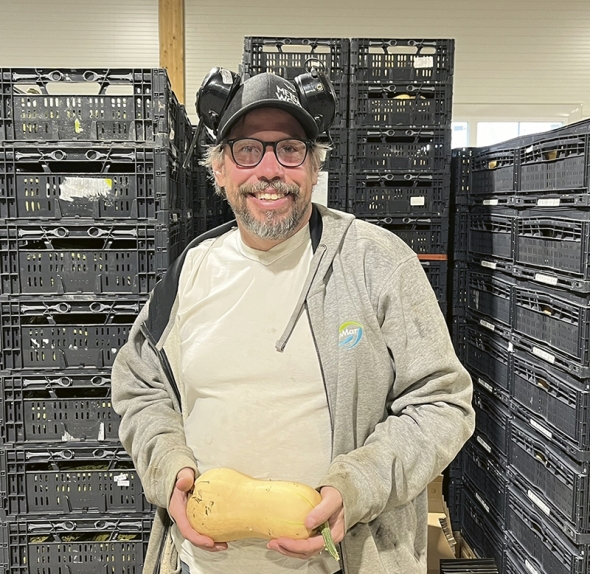 Viljelijä Anders Abrahamsson kasvattaa muun muassa myskikurpitsoja.